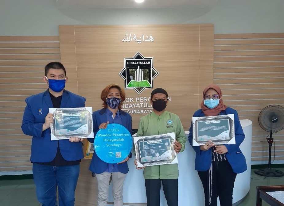Tim KKN dan abmas ITS bersama Pondok Pesantren Hidayatullah Surabaya yang menjadi mitra sekolah dengan kantin berkomitmen halal