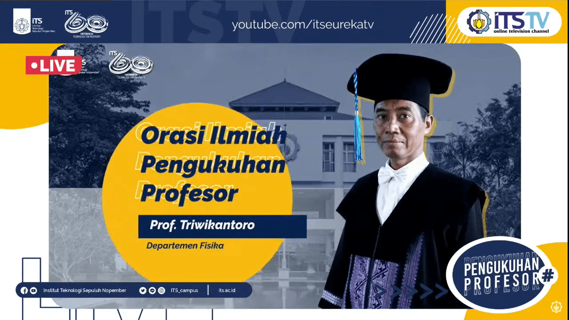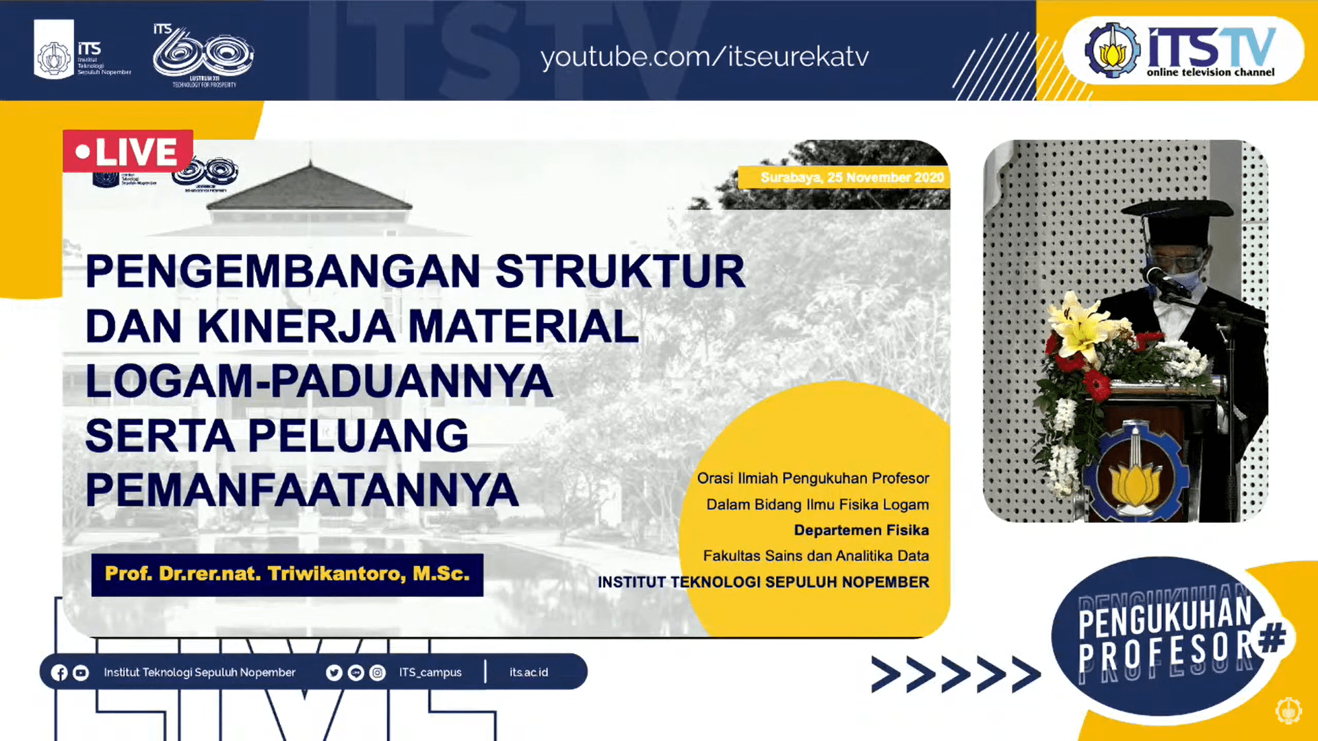 Pemaparan orasi ilmiah Prof Dr rer nat Triwikantoro MSc, yang dapat disaksikan pada kanal Youtube ITS TV.
