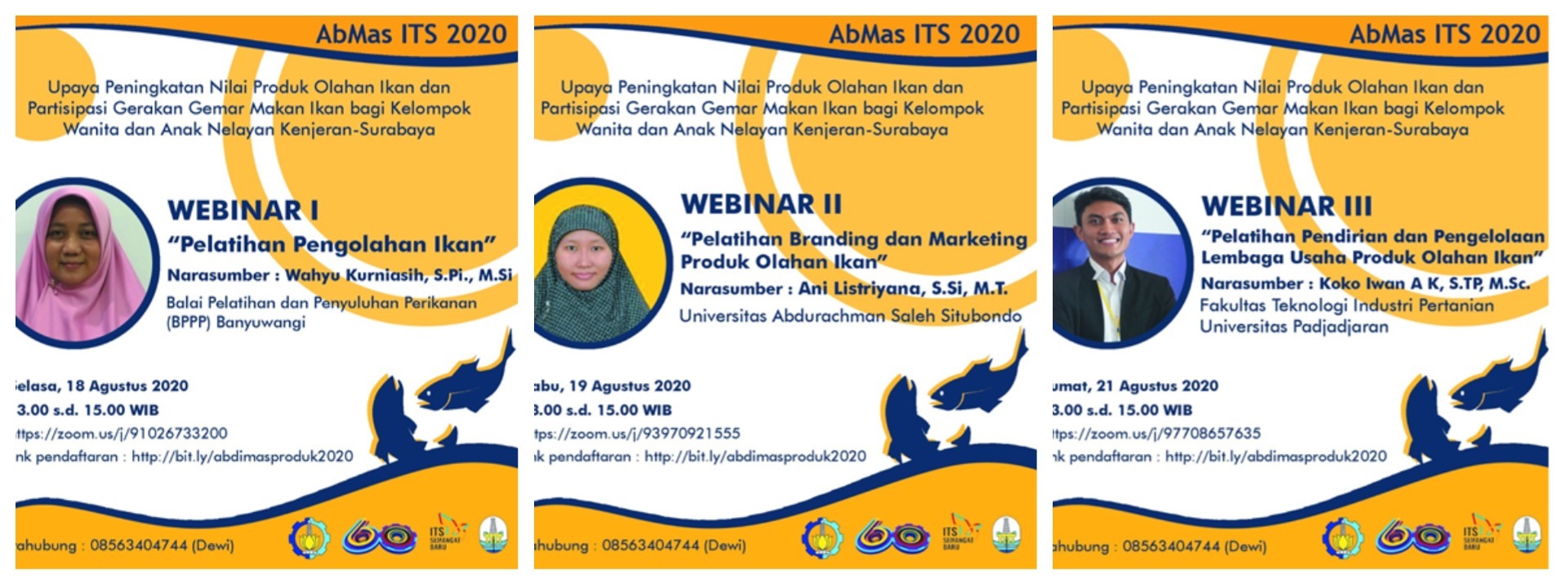 Kampus ITS, ITS News — Luasnya wilayah laut Indonesia berimbas pada besarnya potensi bidang perikanan tanah air. Sayangnya, belum banyak masyarakat yang memahami bagaimana cara meningkatkan nilai jual ikan. Lewat serangkaian acara webinar, Tim Abdi Masyarakat (Abmas) Departemen Teknik Kelautan Institut Teknologi Sepuluh Nopember (ITS) mencoba menghadirkan pengetahuan tersebut kepada masyarakat.