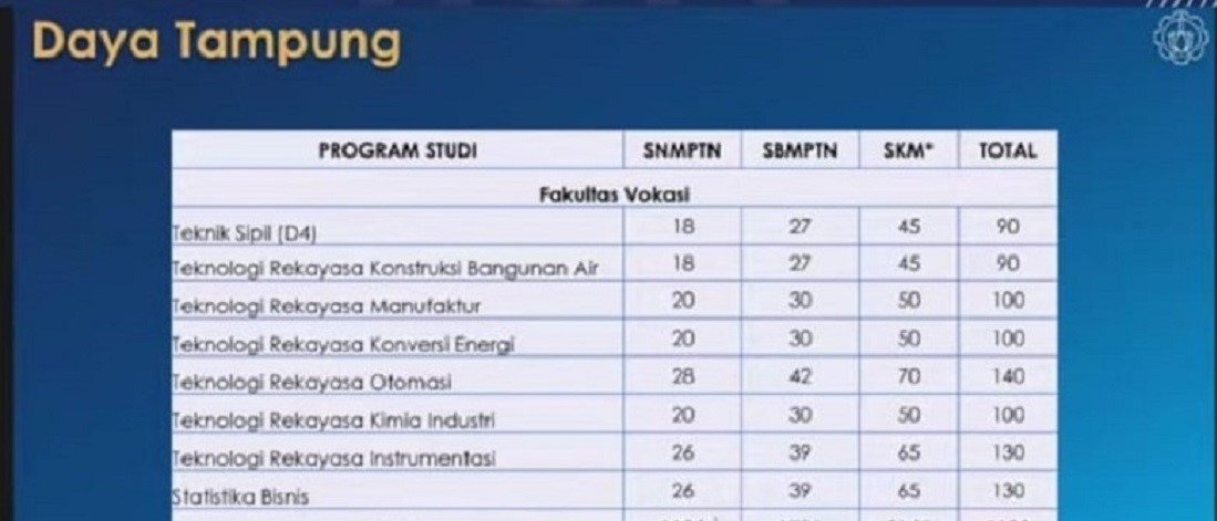 Daya Tampung Fakultas Vokasi ITS tahun 2021 lewat tiga jalur yang tersedia