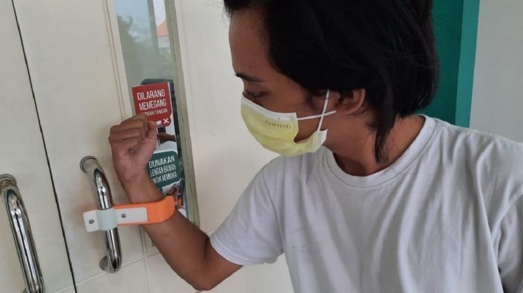 Menurut keterangan Okta, desain alat bantu gagang pintu ini dikembangkan sedemikian rupa sampai dapat digunakan dengan prinsip contactless. Dengan begitu, pintu dapat dibuka dan ditutup dengan lengan ataupun siku tanpa harus dipegang langsung menggunakan tangan. “Sebenarnya alat bantu gagang pintu seperti ini sudah ada di beberapa negara lain, namun kami mengembangkan desainnya agar bisa sesuai dengan kondisi tempat terpasangnya alat,” terangnya.