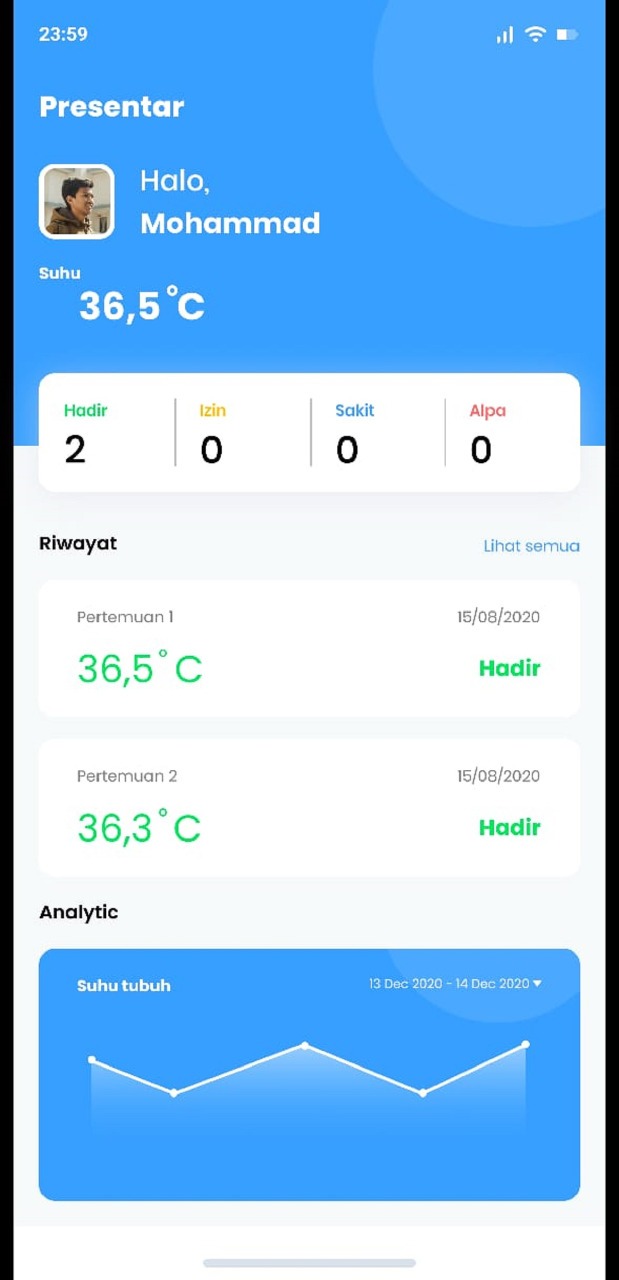 Desain aplikasi presensi dan pengecek kondisi suhu tubuh pada Presentar, rancangan tim mahasiswa ITS