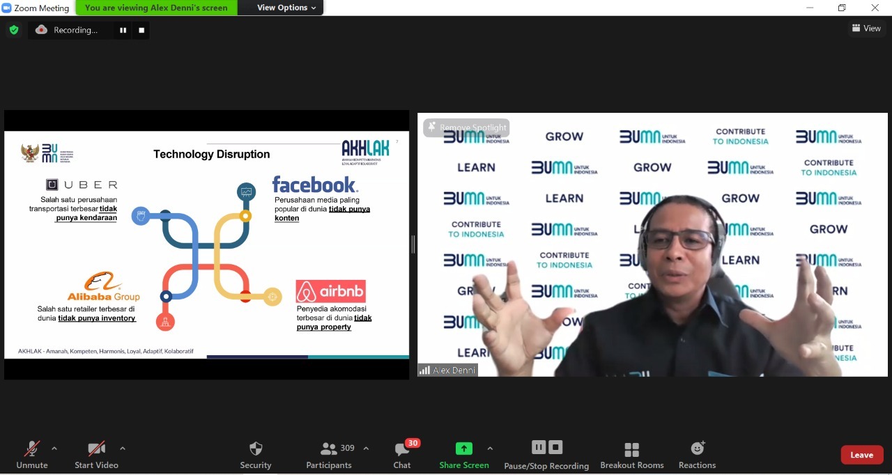 Dr Ir Alex Denni menyampaikan materi penggerak mengenai pembangunan SDM dan peluang kerja sama dengan BUMN pada Sekolah Kepemimpinan ITS