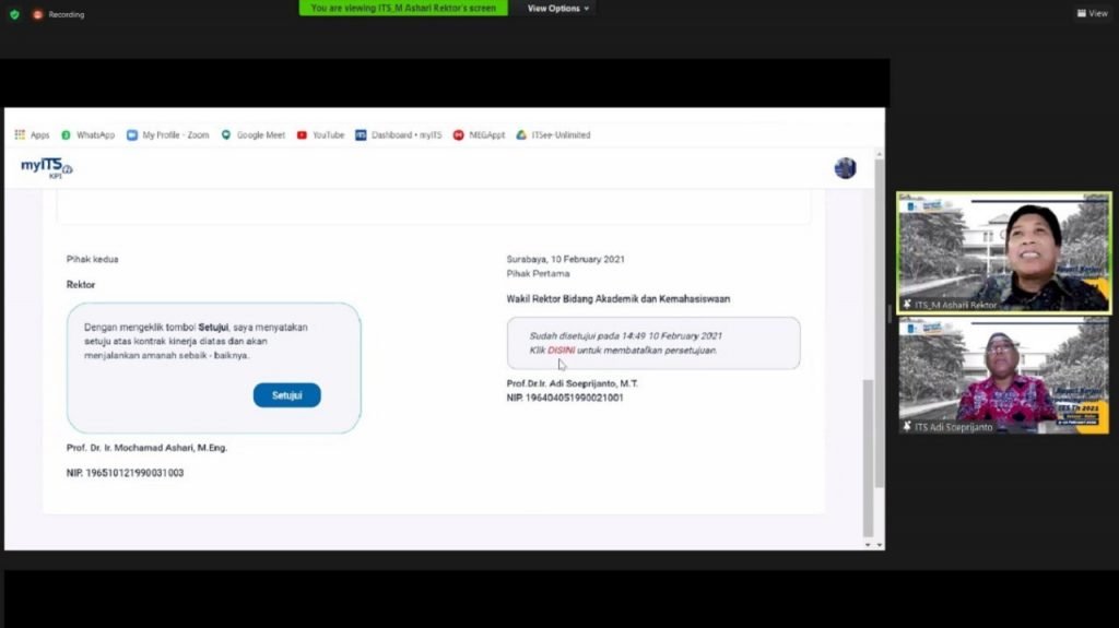 Penandatanganan kontrak kerja oleh Rektor ITS Prof. Dr. Ir. Mochamad Ashari, M.Eng dan Wakil Rektor I ITS Prof. Dr. Ir. Adi Supriyanto, M.T melalui myITS KPI