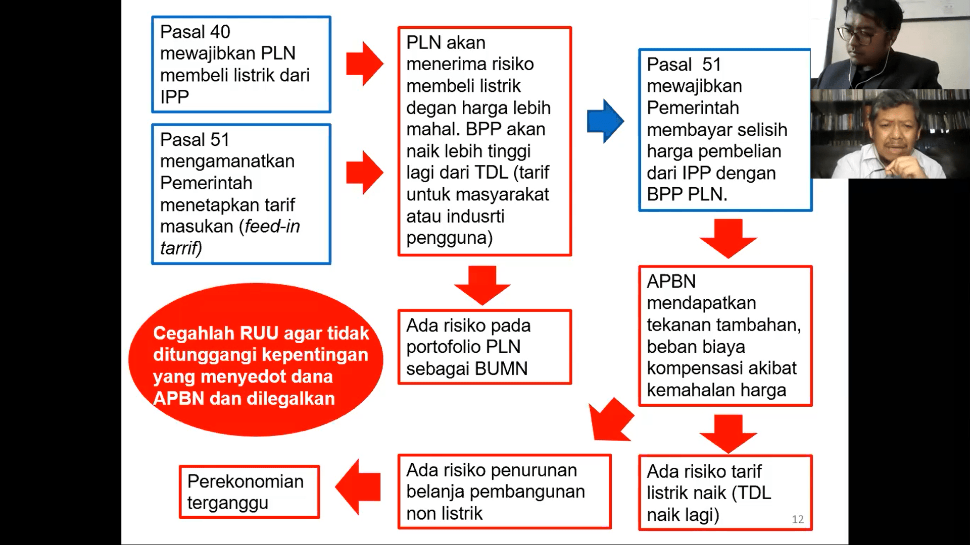 Kekhawatiran profesor yang akrab disapa Mukhtasor ini muncul lantaran, berdasarkan pasal 40 RUU EBT, Perusahaan Listrik Negara (PLN) diwajibkan membeli produksi listrik swasta serta asing. Kemudian, dalam pasal 51, tertera bahwa adanya feed-in tariff (tarif masukan) sebagai harga jual listrik dari swasta oleh PLN. “Padahal, tarif masukan ini dapat membuat harga jual listrik menjadi lebih mahal lagi,” ungkap mantan anggota Dewan Energi Nasional ini.