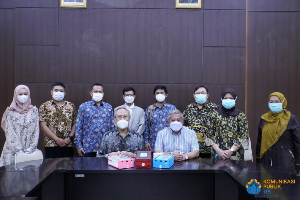 Kampus ITS, ITS News – Perjalanan alat inovasi canggih untuk skrining Covid-19, i-nose c-19, masih terus berlanjut. Alat yang dikembangkan oleh guru besar Institut Teknologi Sepuluh Nopember (ITS) Prof Drs Ec Ir Riyanarto Sarno MSc PhD dan tim dalam tahapan penambahan sampel untuk proses uji profiling. Dalam rangka penambahan sampel, Prof. Drs. Ec. Ir. Riyanarto Sarno M.Sc. Ph.D. dan tim melakukan penyerahan empat alat i-nose c-19 di Rumah Sakit Islam (RSI) Jemursari Surabaya, Senin (22/2).