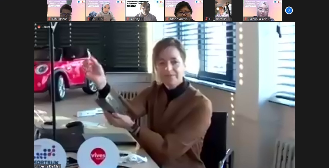 Sambutan Veerle De Mey dari VIVES University of Applied Science Belgia dalam program Challenges & Opportunities of Healthcare Technology Innovation.