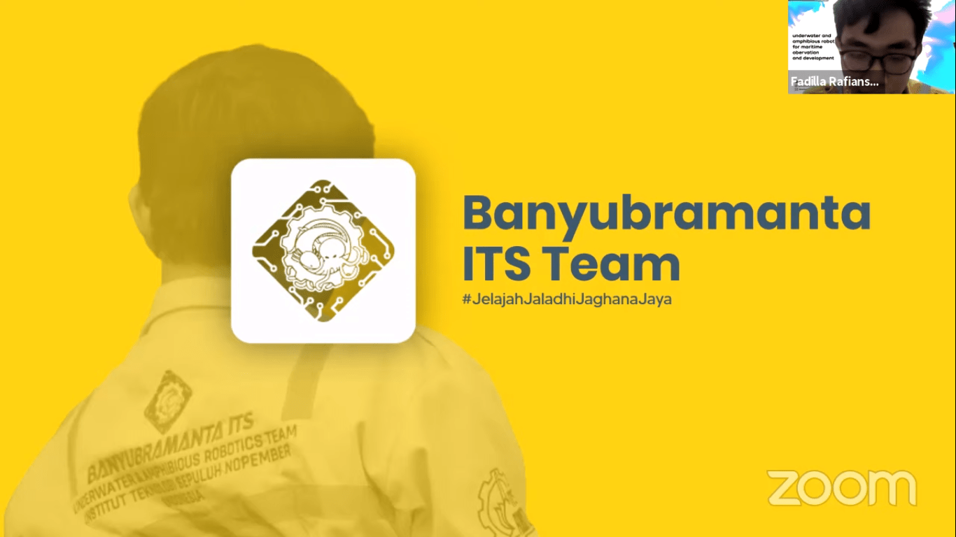 Kampus ITS, ITS News – Tim Banyubramanta kembali memperkenalkan robot terbarunya yaitu Robot Bawah Air dan Amfibi. Melalui acara webinar yang diadakan di platform Zoom Meeting tersebut, Tim robotik unggulan Institut Teknologi Sepuluh Nopember (ITS) ini juga membagikan pengetahuan mengenai robot kepada peserta yang hadir.