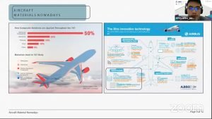 Afriyanto memaparkan persentase penggunaan Carbon Fiber pada pesawat Boeing 787 dan Airbus A350.