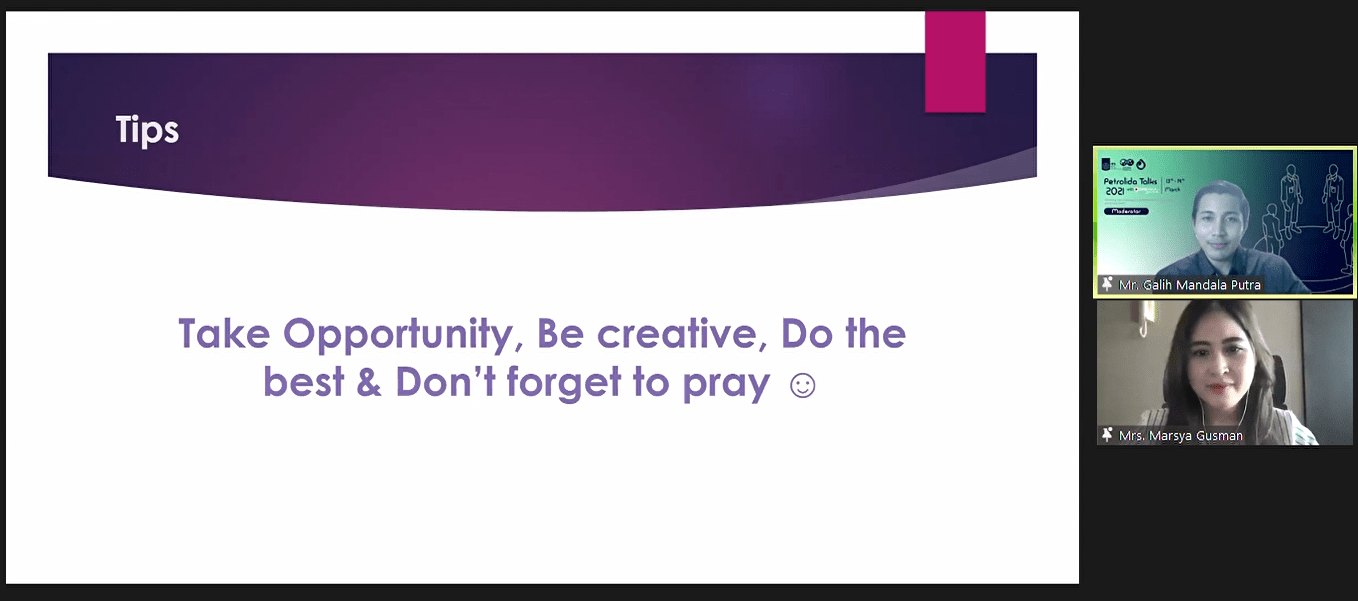 Kalimat motivasi yang dihaturkan Marsya saat menutup webinar