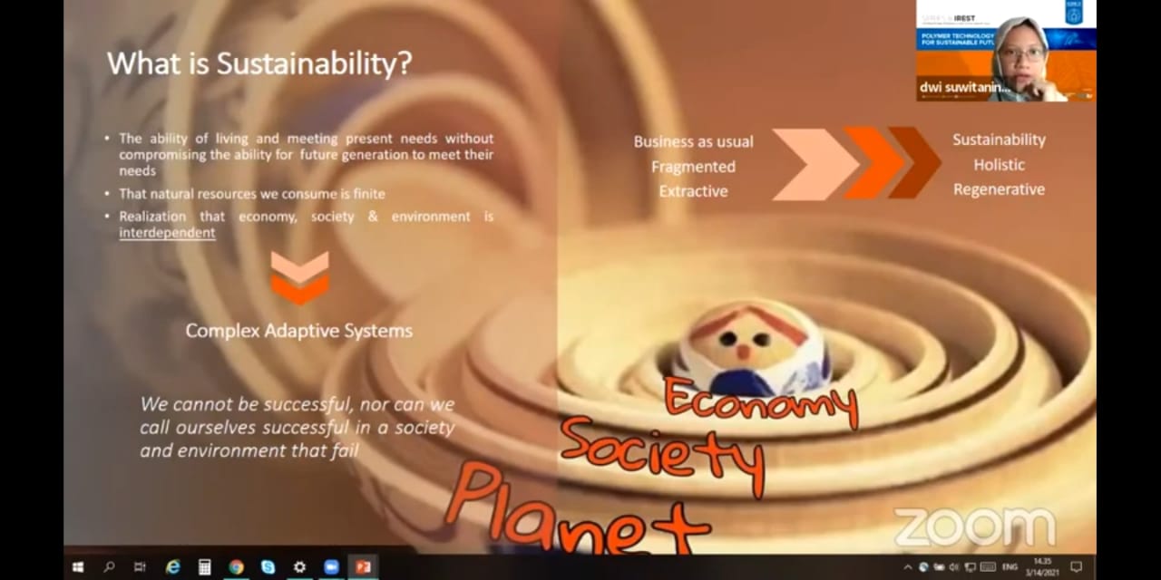 Dwi Ngesti Suwitaningsih memaparkan pengertian Suistanability.