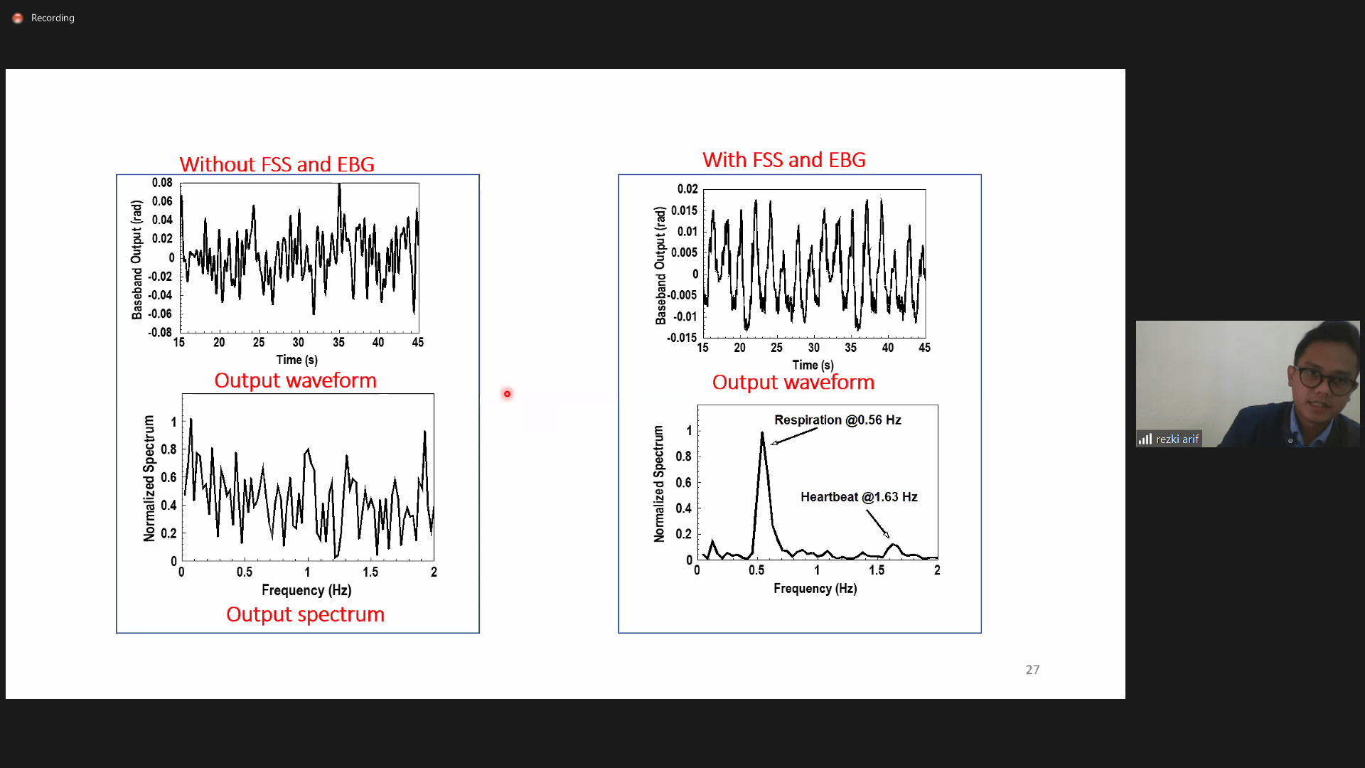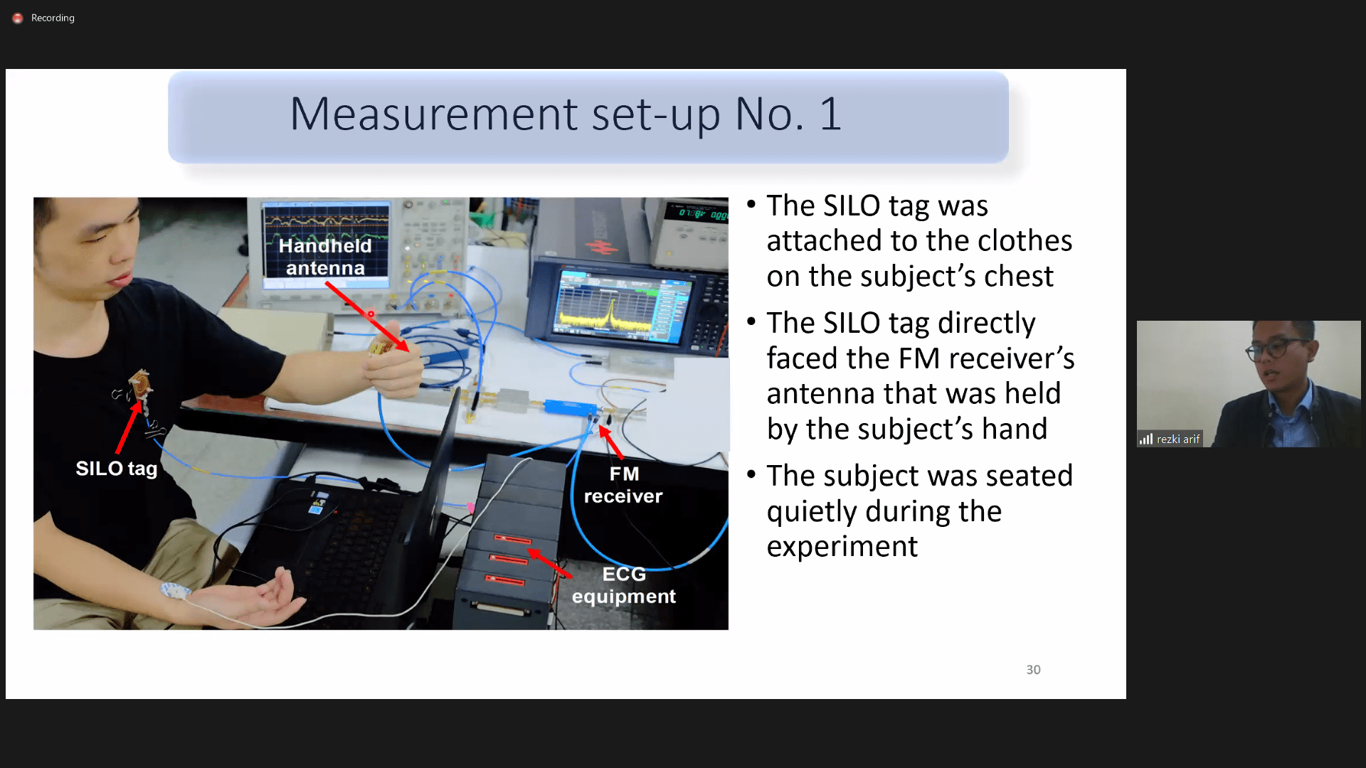 Diundang sebagai pembicara, Rezki El Arif menjelaskan terkait teknologi radar yang sedang dikembangkan bersama Prof Tzyy-Sheng Horng untuk memonitor pernapasan manusia. Radar yang digunakan dalam alat ukur pernapasan ini telah dikembangkan bersama sejak 2009 lalu.