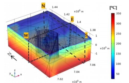Tampilan 3D temperatur medan panas bumi dalam kondisi alamiah