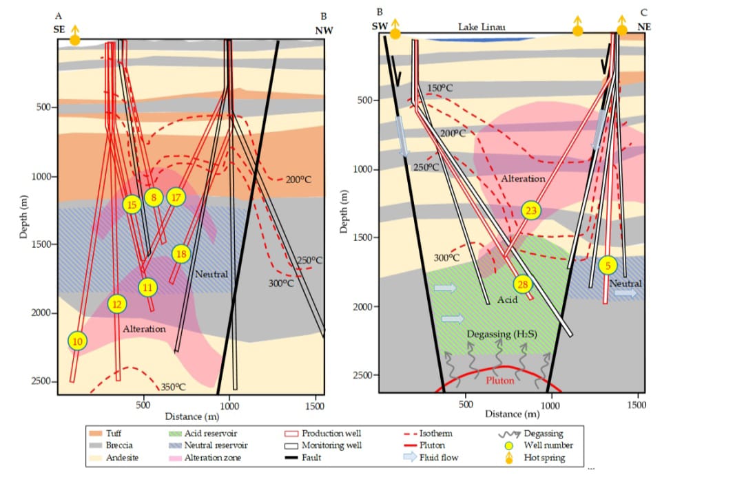 Penampang melintang dari hasil model konseptual lapangan panas bumi Lahendong