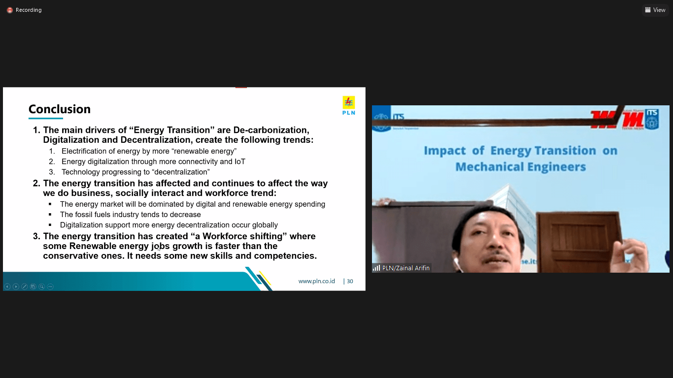 Zainal Arifin memberikan kesimpulan dari presentasinya mengenai transisi energi