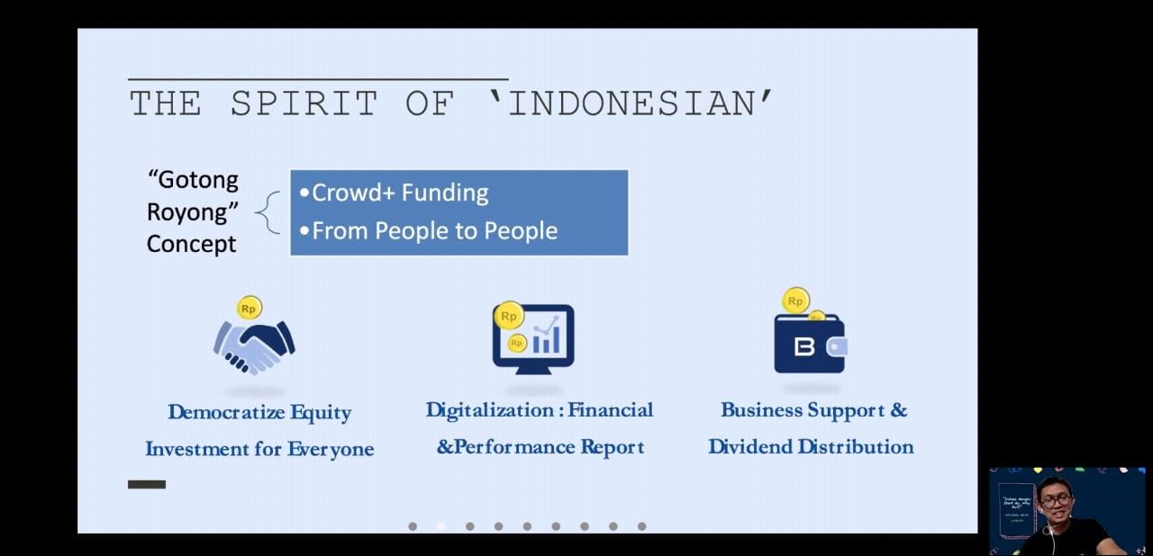 Webinar ini mengundang Farid Bima, perwakilan dari start-up aplikasi Gotukang untuk membagikan pengalamannya dalam merintis bisnis. Bima menjelaskan bahwa Gotukang adalah salah satu start-up yang mempertimbangkan kondisi ekonomi wilayah Indonesia yang beragam. Menyingkap cara kerjanya, bisnis di bidang konstruksi ini memberikan layanan desain, pembangunan konstruksi baru, renovasi, hingga value engineering. “Start-up ini sangat mengutamakan koordinasi disetiap lingkup wilayah, baik desa hingga kota,” jelasnya.