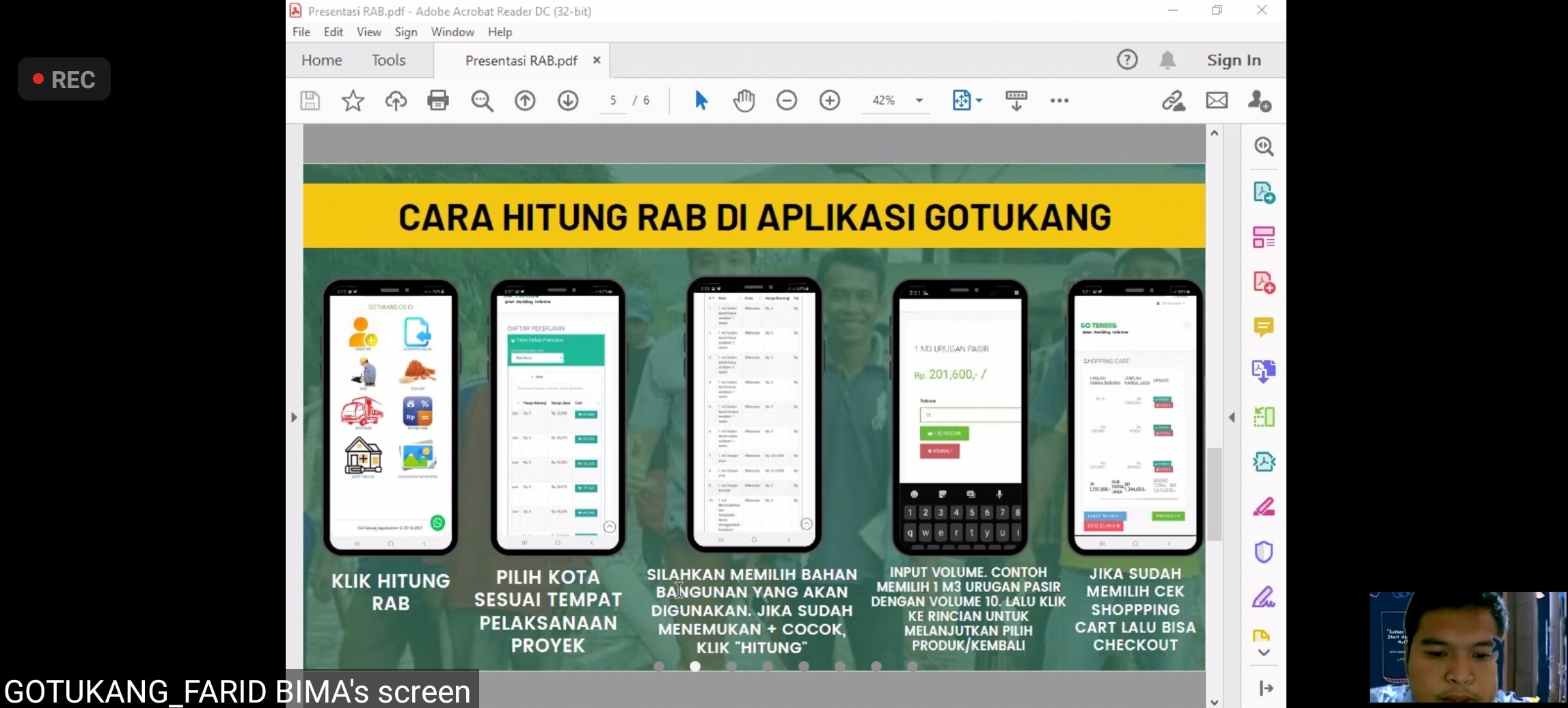 Perwakilan dari aplikasi Gotukang Farid Bimamembagikan tahapan menghitung RAB yang ditawarkan aplikasi tersebut.