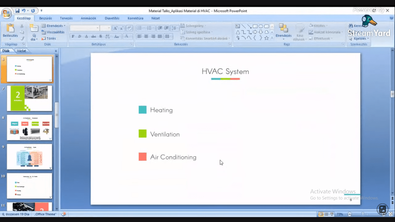 Presentasi Ferdiansyah Iqbal Saputra yang menjelaskan mengenai sistem HVAC.