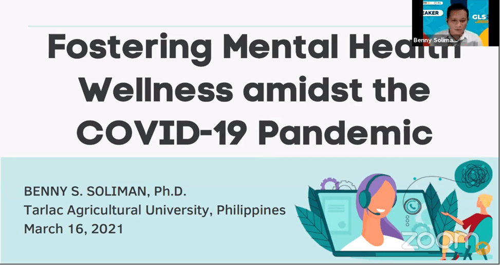 Membuka paparannya, Dr Benny Soliman RGC LPT RPM mengatakan menurut laporan World Health Organization (WHO) dan Centers for Disease Control and Prevention (CDC) pada tahun 2020, Covid-19 menimbulkan stres dan kecemasan di seluruh populasi. Hal ini berdampak pada terganggunya kesehatan mental. “Kesehatan mental berhubungan dengan cara kita merasakan, berpikir, dan bertindak,” ujar akademisi Tarlac Agricultural University ini.