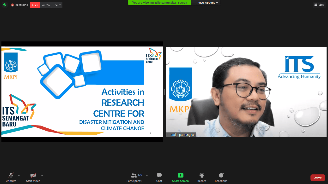 Kepala Pusat Penelitian Mitigasi Kebencanaan dan Perubahan Iklim Institut Teknologi Sepuluh Nopember (MKPI ITS), Adjie Pamungkas ST MDevPlg PhD memaparkan kegiatan yang dilakukan oleh timnya.