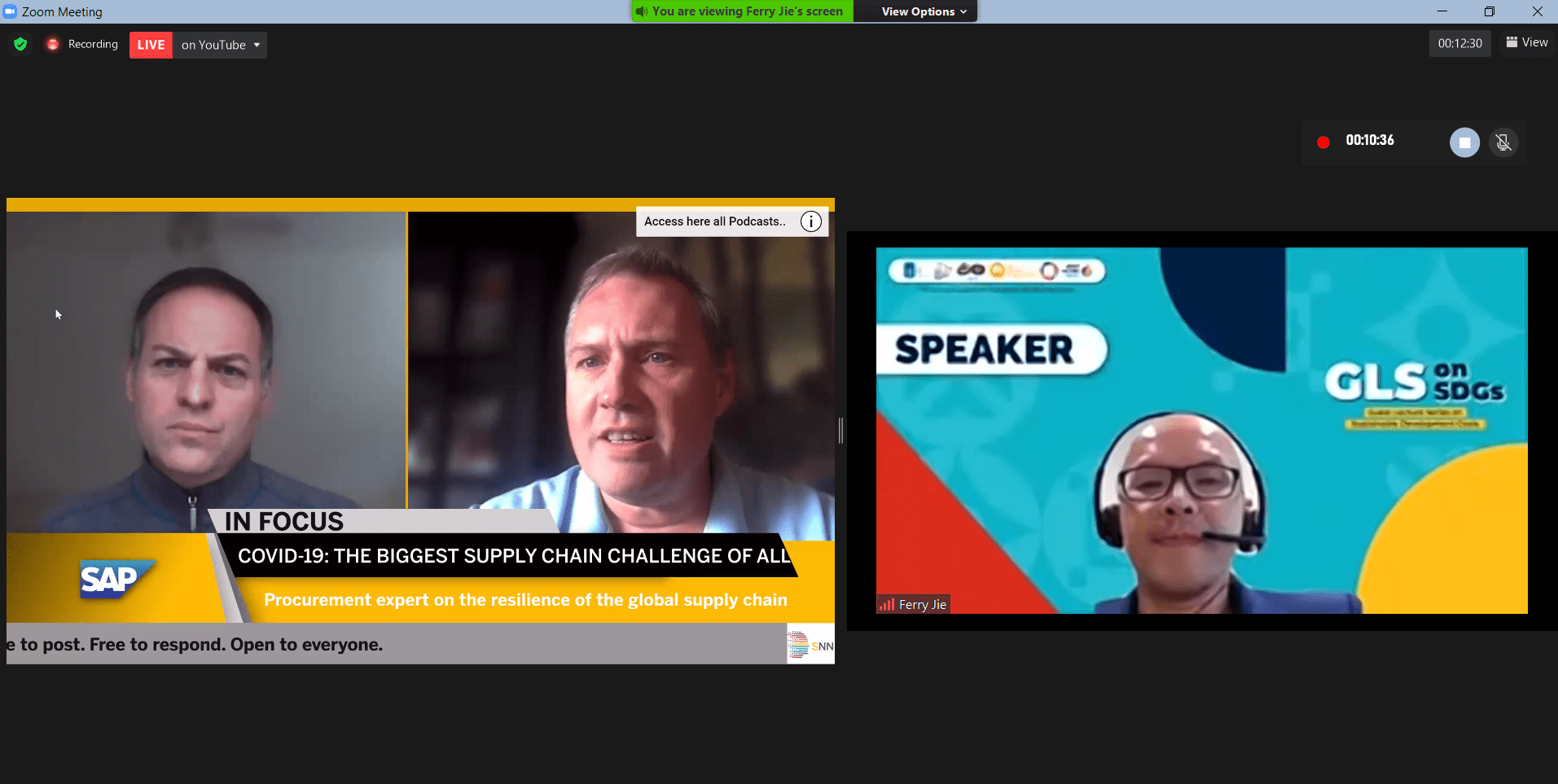 Kampus ITS, ITS News — Pandemi Covid-19 menyebabkan banyak aktivitas industri beralih secara digital, termasuk aktivitas manajemen rantai pasok. Digitisasi rantai pasok dianggap penting untuk mencapai salah satu poin Sustainable Development Goals (SDGs) ke-9. Untuk memahami hal tersebut, Institut Teknologi Sepuluh Nopember Global Engagement (ITS GE) mengadakan Guest Lecture Series on Sdgs pada Rabu, Rabu (31/3).