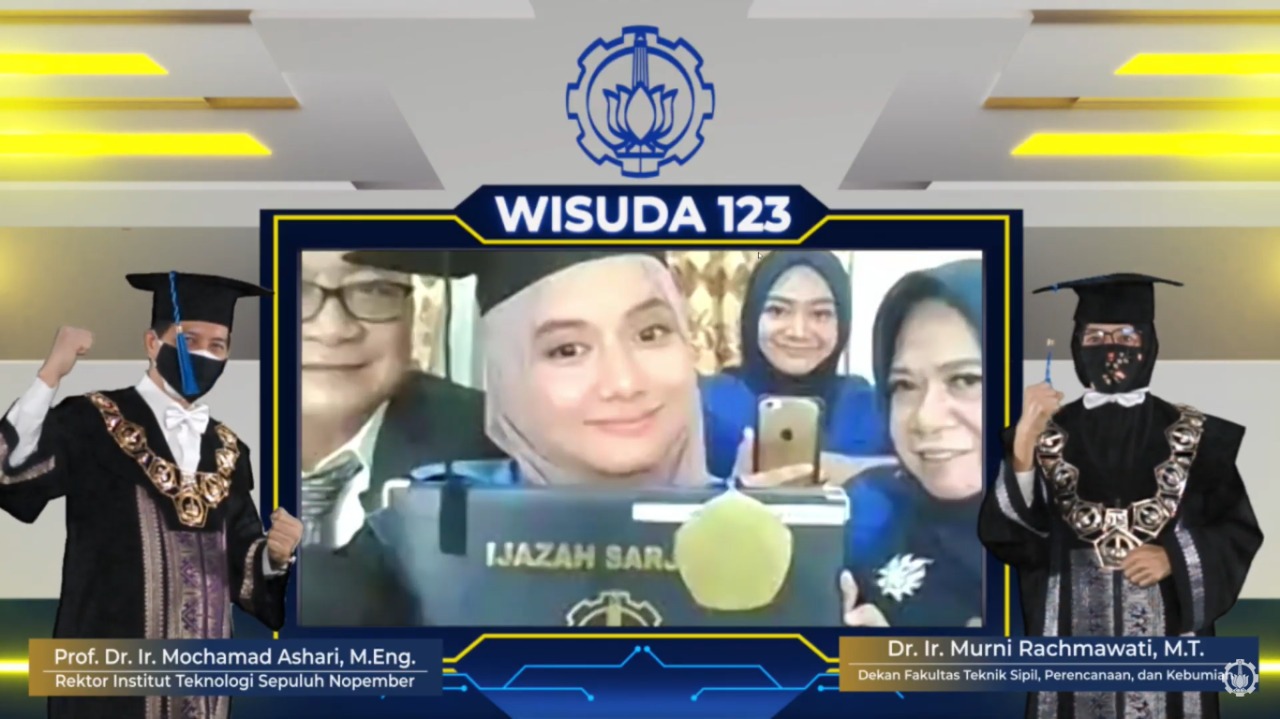 Potret salah satu wisudawan ITS Wening Vio Rizqi Ramadhani bersama keluarga dalam wisuda secara daring