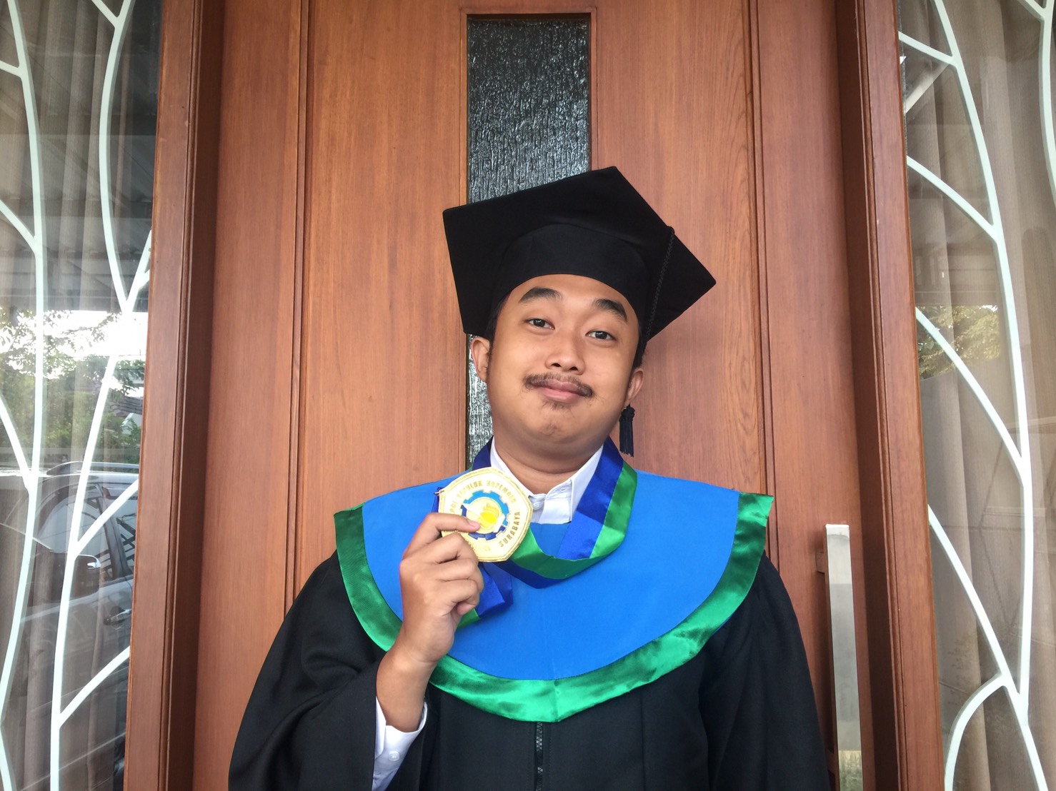 Nugraha Agung Wicaksana, wisudawan yang berulang tahun tepat di hari wisudanya.