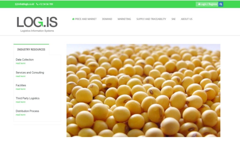 Tampilan antarmuka pengguna pada LOG.IS, mobile web yang memfasilitasi informasi logistik pangan beberapa komoditas serta jual beli online-nya