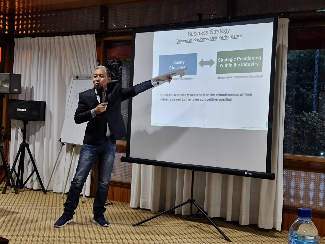 Heru Hermawan ST MM, Sekjen Alfatekelits Jabodetabek, sedang memaparkan materi strategi bisnis kepada peserta BMDP