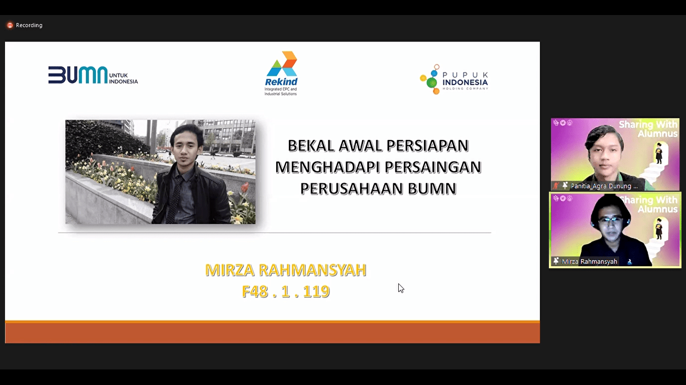 Mirza Rahmansyah (bawah) didampingi moderator saat membuka webinar