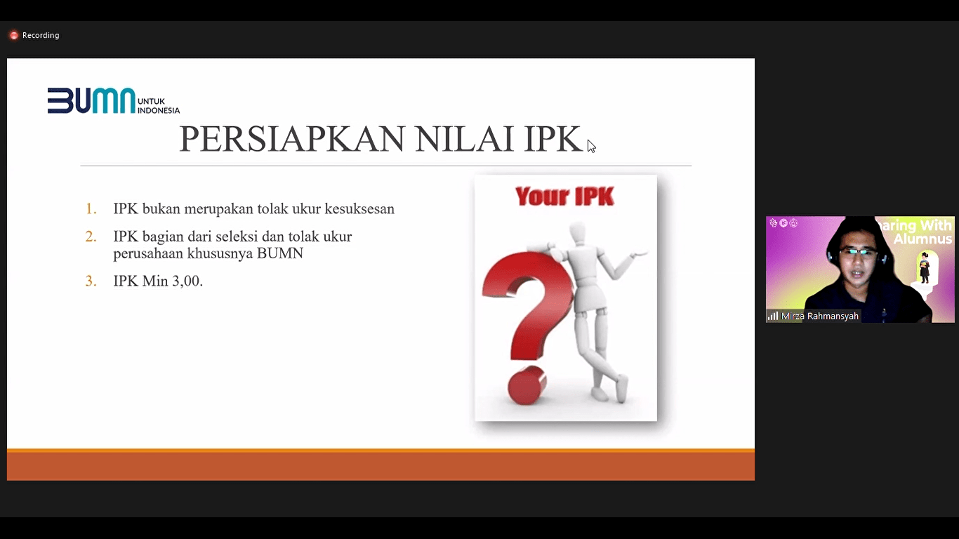 Mirza memaparkan terkait Indeks Prestasi Komulatif (IPK)