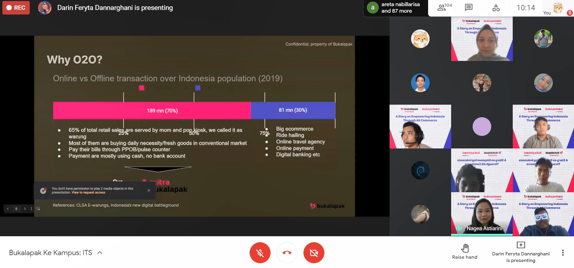 Kampus ITS, ITS News – Hadirnya teknologi di Indonesia dapat menolong Usaha Mikro, Kecil, dan Menengah (UMKM) untuk memperluas jangkauan pasar dan meningkatkan taraf hidup pelaku usaha. Sebagai salah satu perusahaan e-commerce terbesar di Indonesia, Bukalapak menyapa Institut Teknologi Sepuluh Nopember (ITS) untuk memberikan wawasan tentang pentingnya teknologi bagi UMKM dalam webinar bertajuk A Story of Empowering Indonesia Through All Commerce, Minggu (18/4).