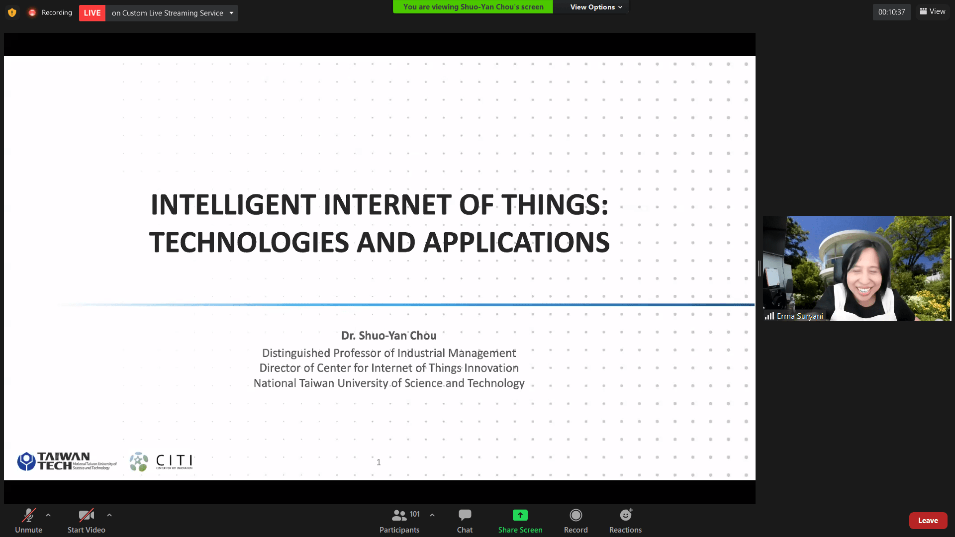 Professor Shuo-Yan Chou saat membuka presentasinya dalam gelar wicara Fondation of Internet of Things