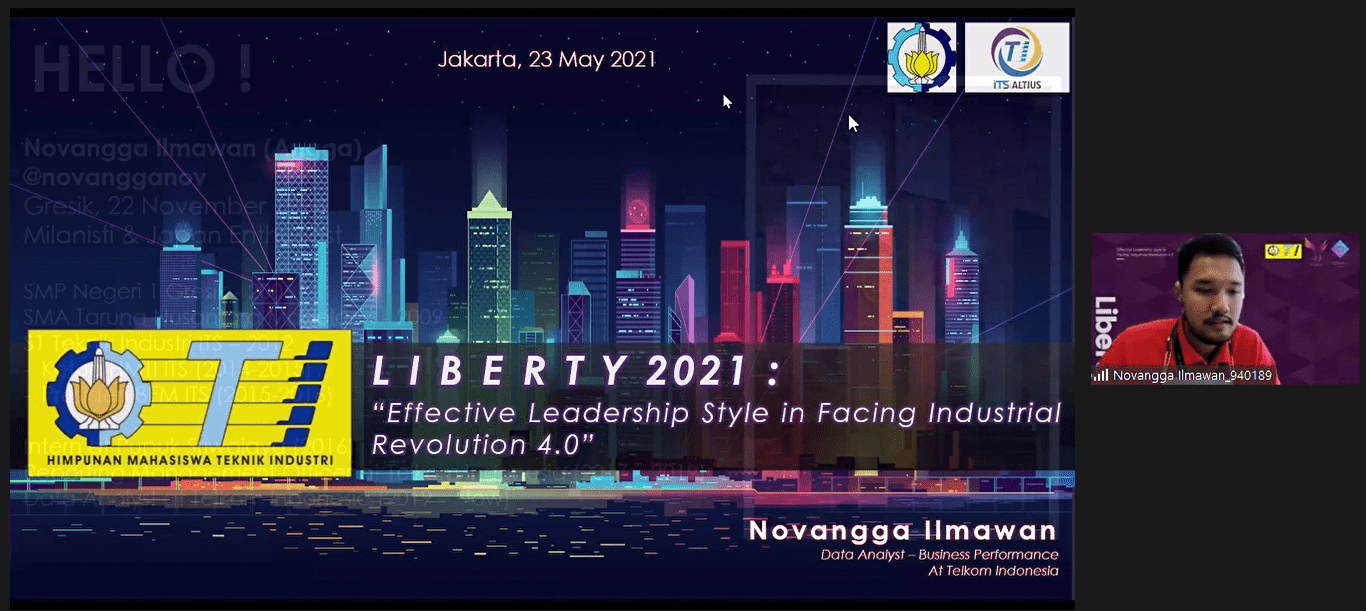 Kampus ITS, ITS News — Perkembangan teknologi yang cepat membawa dampak perubahan dan tantangan tersendiri bagi generasi muda. Setiap orang juga dituntut memiliki kemampuan leadership yang baik agar mampu bersaing. Menanggapi hal tersebut, Himpunan Mahasiswa Teknik Sistem dan Industri (HMTI) Institut Teknologi Sepuluh Nopember (ITS) menggagas webinar Liberty #2 untuk menjawab kebutuhan leadership pada era revolusi industri 4.0 saat ini.