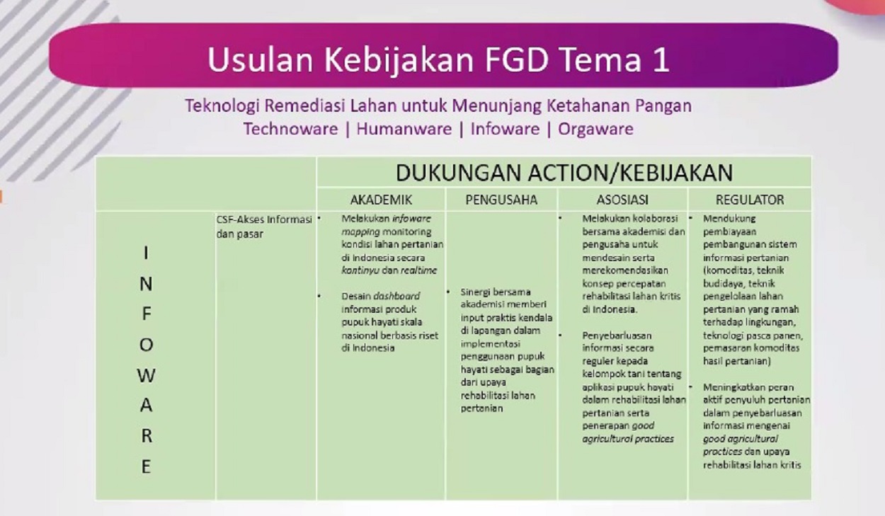 Usulan kebijakan Teknologi Remediasi Lahan untuk Ketahanan Pangan