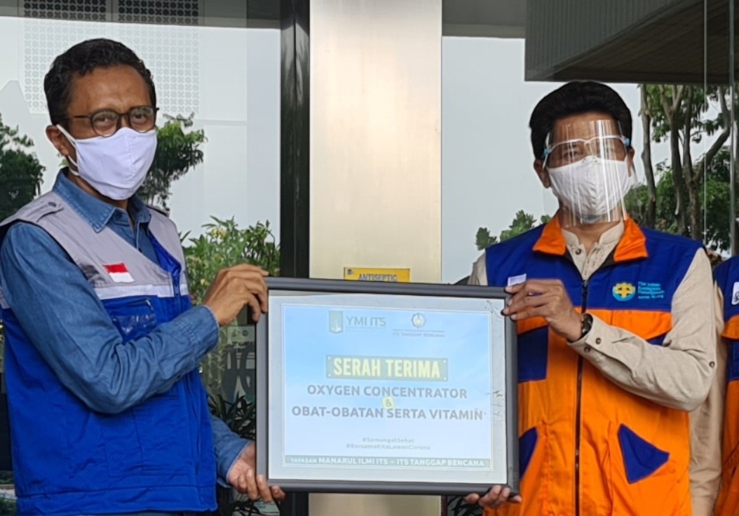 Kampus ITS, ITS News — Kebutuhan akan alat bantu serta obat-obatan meningkat seiring jumlah pasien Covid-19 yang kian bertambah. Guna membantu memenuhi kebutuhan sivitas akademika yang terdampak, Yayasan Manarul Ilmi Institut Teknologi Sepuluh Nopember (YMI ITS) bersama ITS Tanggap Bencana mendonasikan enam unit oksigen konsentrator, obat-obatan, dan suplemen pada Satuan Tugas (Satgas) Covid-19 ITS.