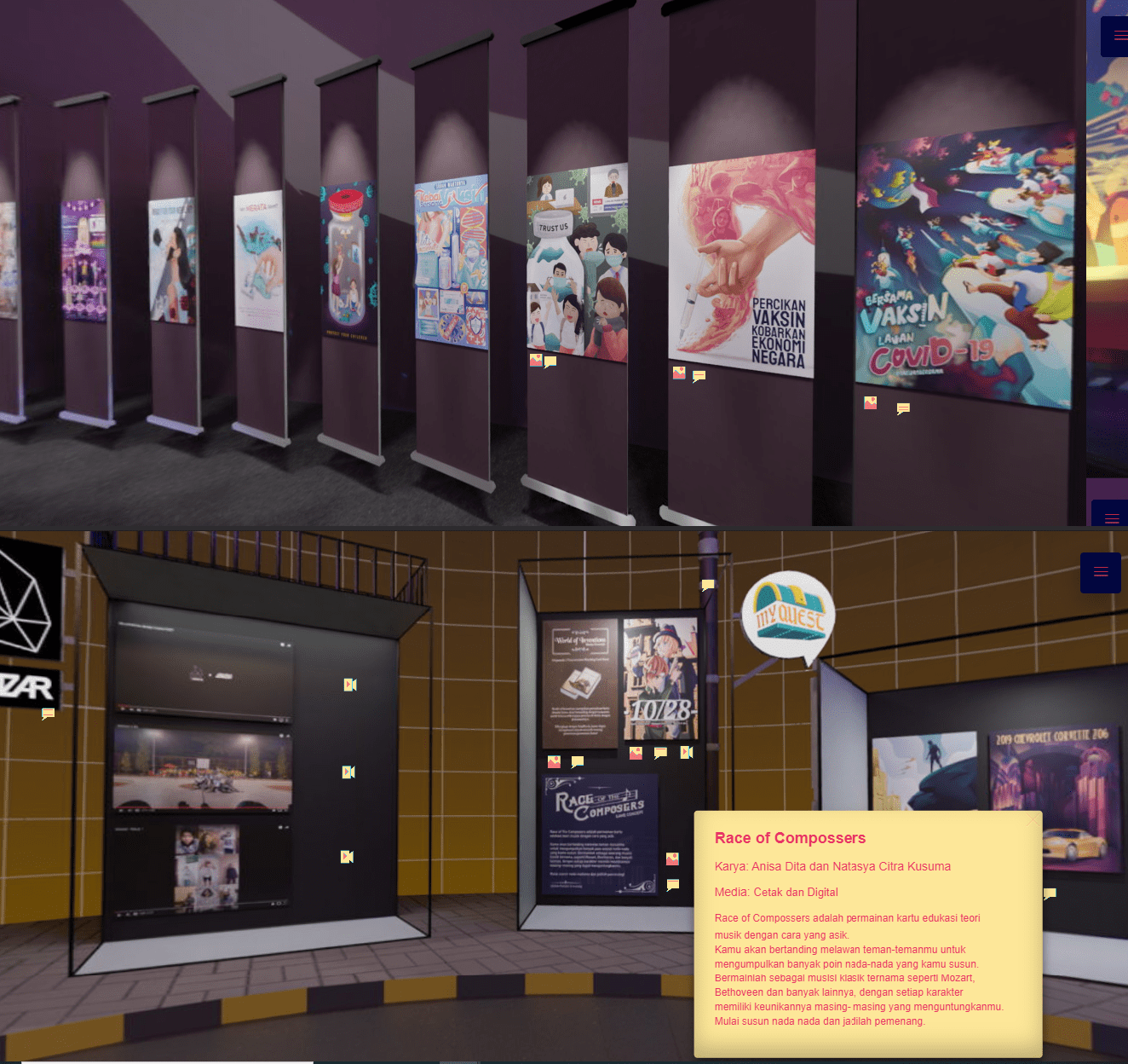 Gambaran deskripsi karya dan layout peletakan karya di dalam pameran virtual Rupafest 2021