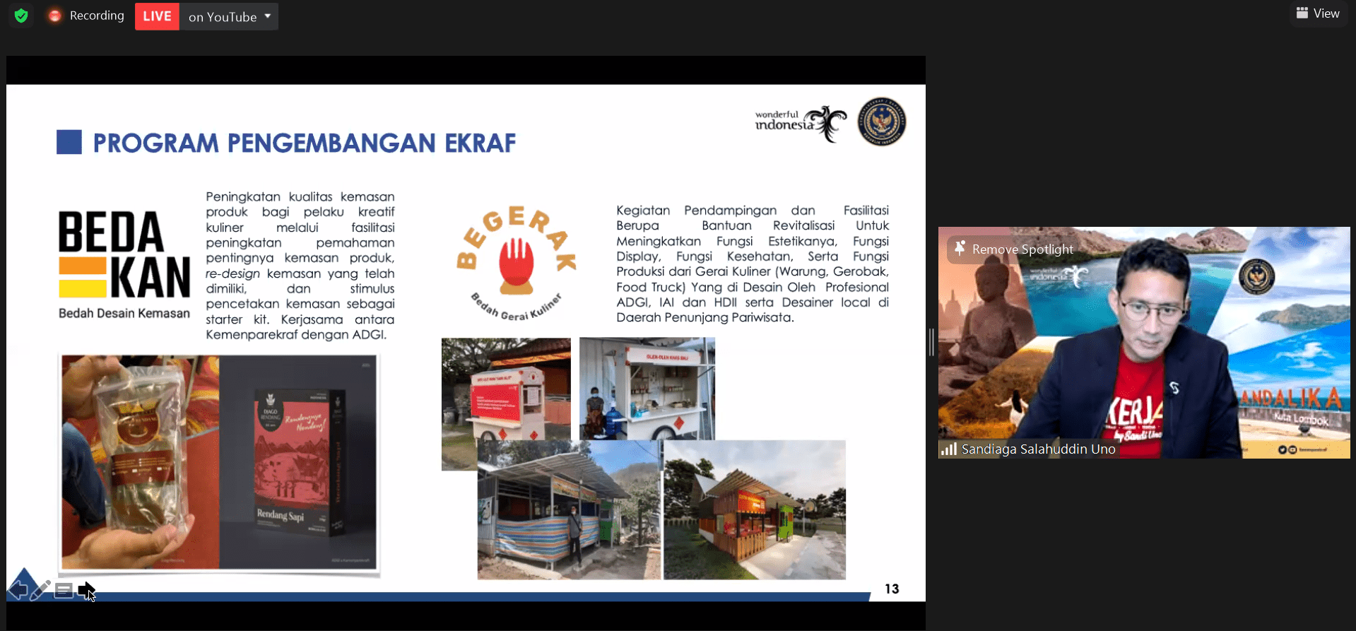 Dr Sandiaga Salahuddin Uno menunjukkan salah satu program Kemenparekraf yang melibatkan ekonomi kreatif