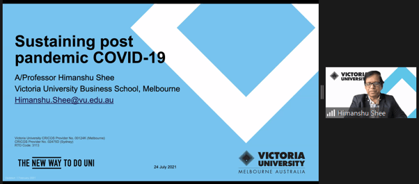 Assoc Prof Himanshu Shee PhD saat menyampaikan materinya mengenai Sustaining Post Pandemic Covid-19