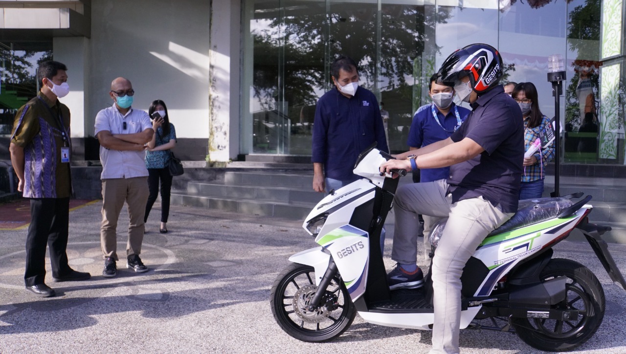 Kampus ITS, ITS News – Institut Teknologi Sepuluh Nopember (ITS) melalui unit usaha PT ITS Tekno Sains menghadirkan produk inovasinya berupa motor listrik GESITS untuk menunjang kegiatan operasional di PT Terminal Teluk Lamong. PT ITS Tekno Sains secara langsung menyerahkan motor listrik GESITS tersebut di kantor Terminal Teluk Lamong, Kamis (5/8) sore.