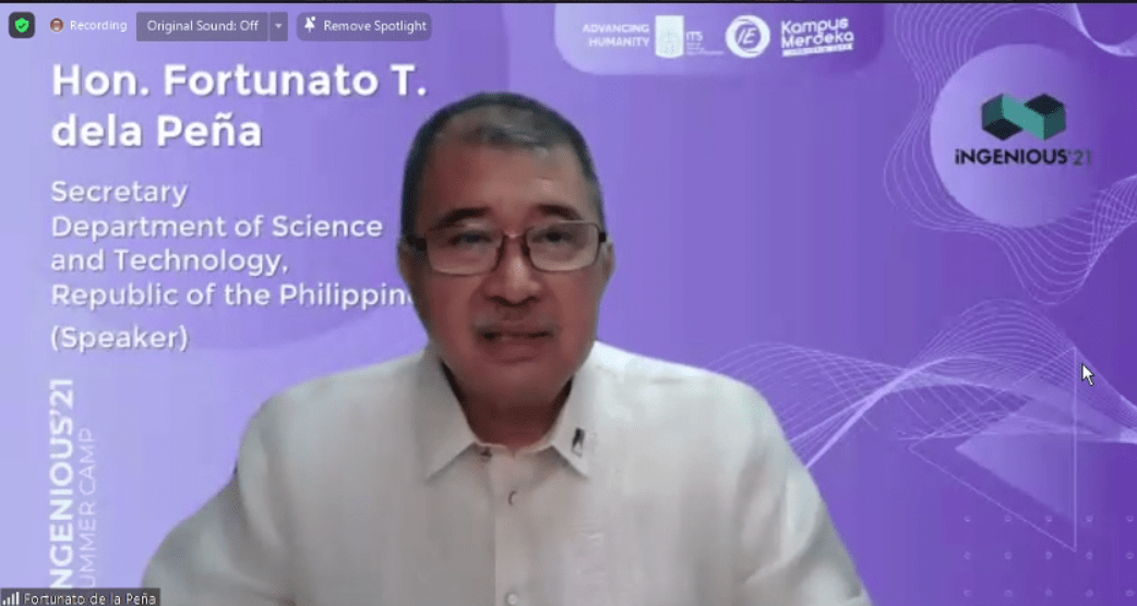Sekretaris Departemen Sains dan Teknologi Filipina, Prof. Fortunato de la Pena, saat memaparkan materi peluang bisnis pasca pandemi dalam acara Summer Camp Ingenious 2021.