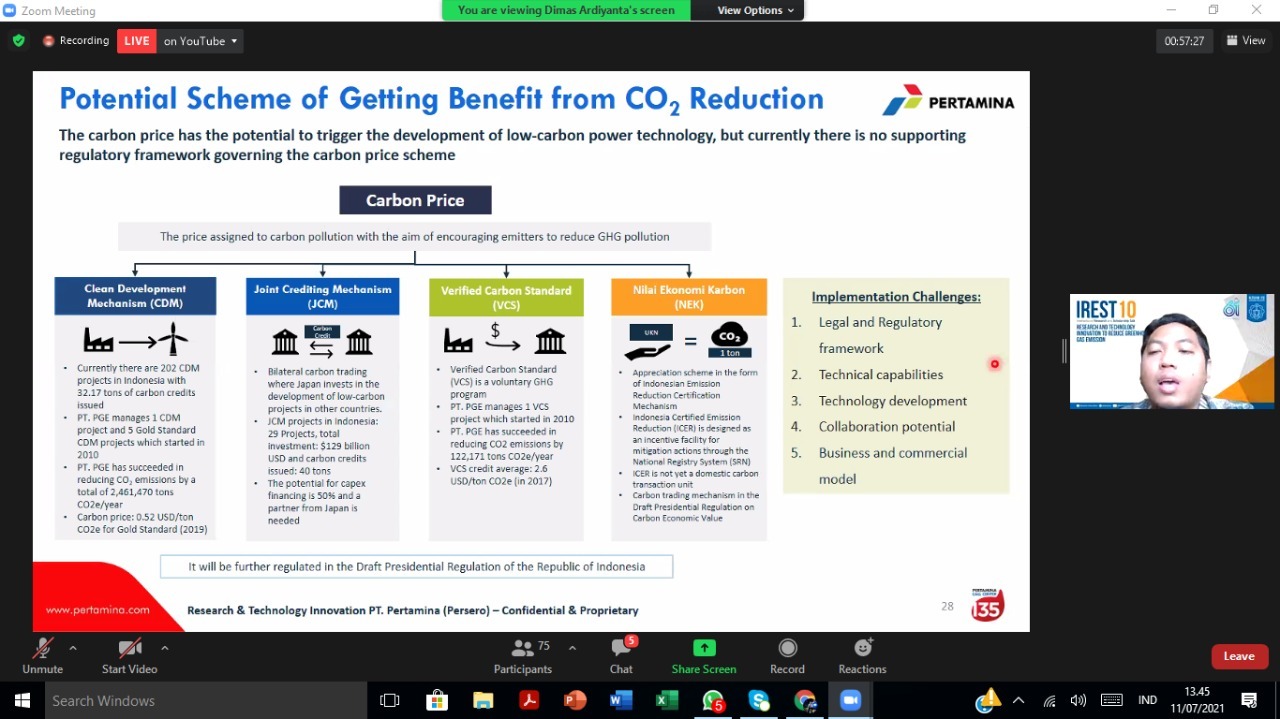 Pemaparan oleh pemateri mengenai ruang lingkup pengembangan inovasi dalam Pertamina yang berhubungan erat dengan Efek Gas Rumah Kaca (GRK).