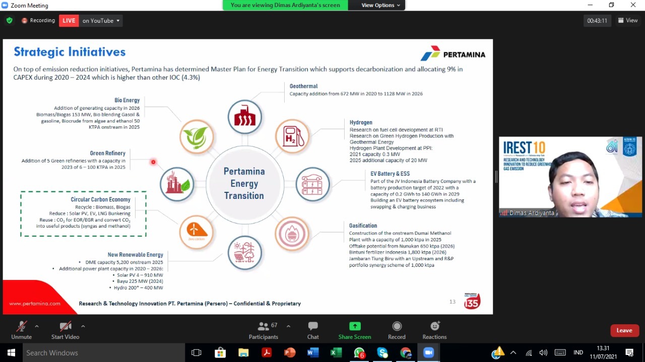 Dimas berharap dengan semua strategi dan inisiatif dari pemerintah dan juga Pertamina ini akan memudahkan para masyarakat Indonesia untuk turut andil terhadap pengendalian emisi khususnya Gas Rumah Kaca (GRK). “Konsep, strategi ini akan terus kami kembangkan sesuai dengan perkembangan teknologi dan kebutuhan untuk terus berkontribusi aktif dalam perubahan iklim global,” pungkas Dimas menutup pemaparannya. (*)