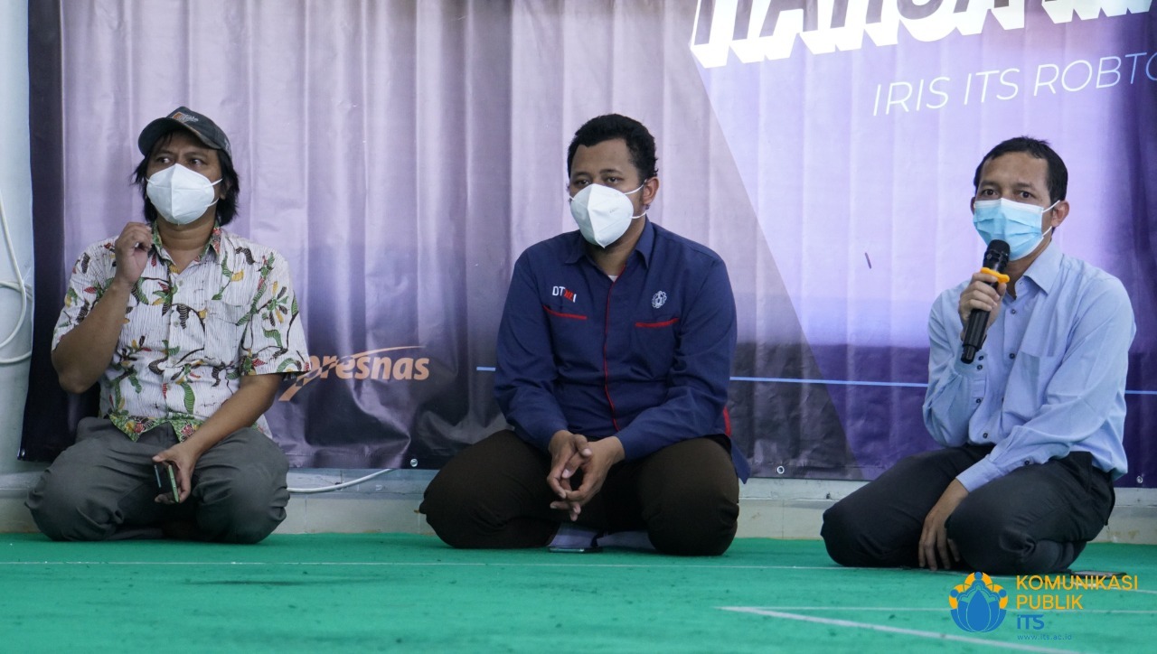 Koordinator Pembimbing tim robotika ITS, Muhtadin ST MT (paling kanan) saat memaparkan teknis KRI 2021 dalam acara pelepasan tim KRI ITS, Kamis (23/9).