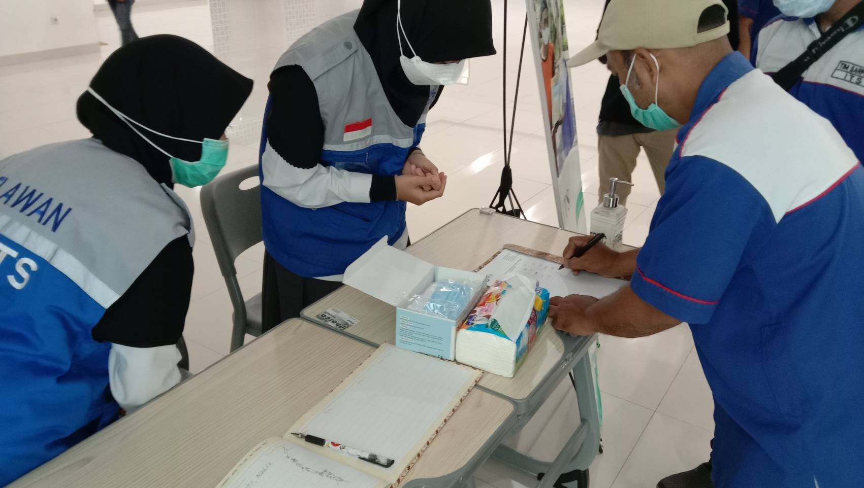 Panitia menyediakan masker dan hand sanitizer untuk semua orang, bersamaan dengan mengisi kehadiran sebelum memasuki ruangan