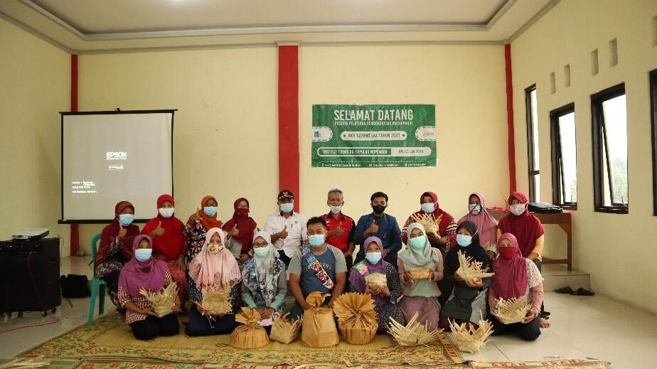 Foto bersama seluruh mitra binaan dalam workshop pembuatan besek