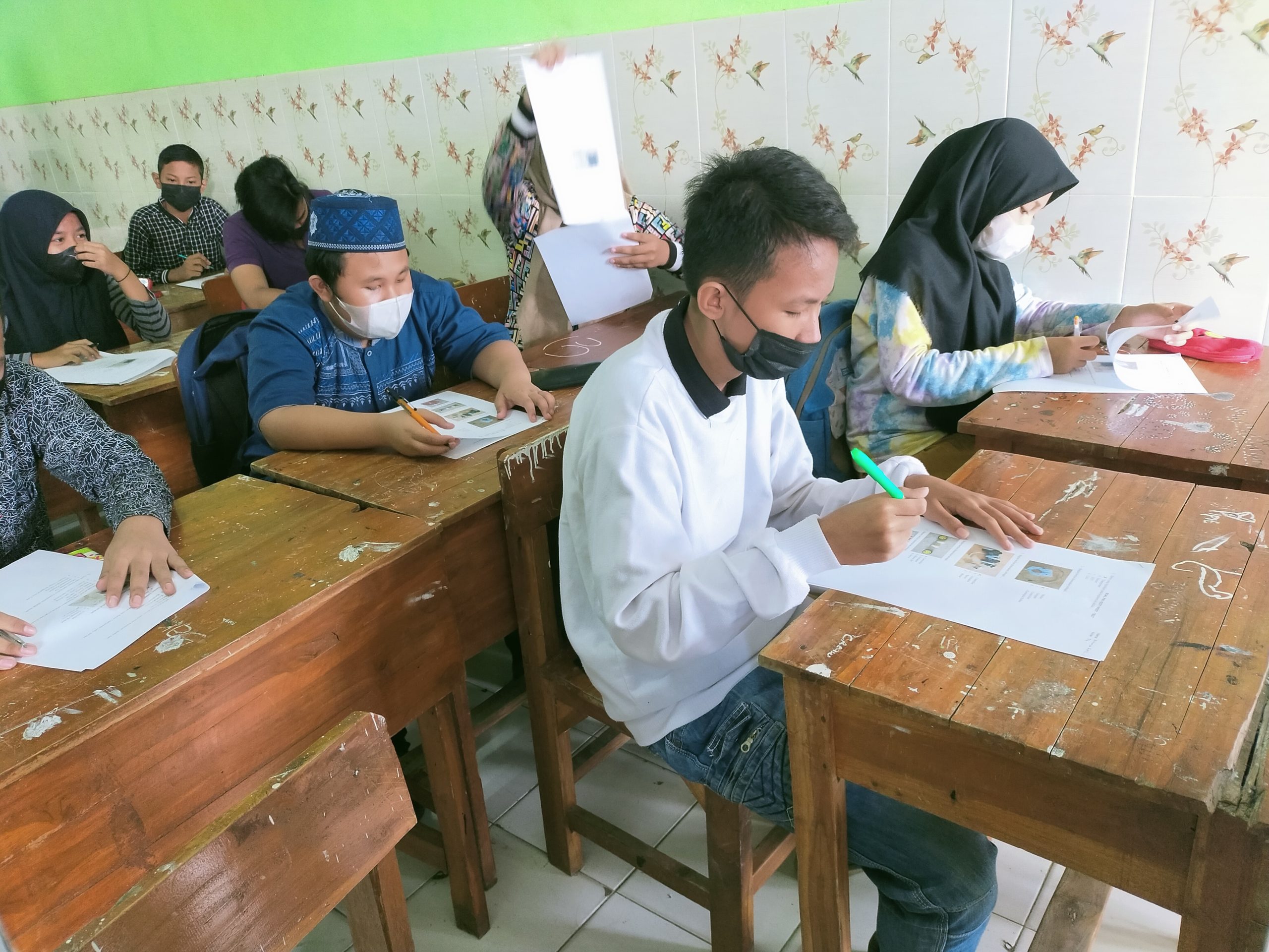 Siswa dan siswi MTs Nurul Islam sedang mengerjakan latihan soal terkait dengan bahan pembelajaran Robotika yang sudah diberikan.