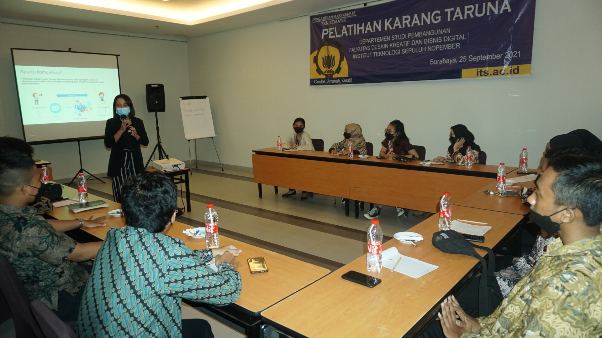 Kampus ITS, ITS News – Karang taruna memiliki peran penting dalam membantu masyarakat. Hal tersebut membuat tim Pengabdian Masyarakat (Abmas) Institut Teknologi Sepuluh Nopember (ITS) memberikan pelatihan dalam meningkatkan kualitas Karang Taruna Karangrejo Sawah, Wonokromo, Kota Surabaya, Sabtu (25/9).