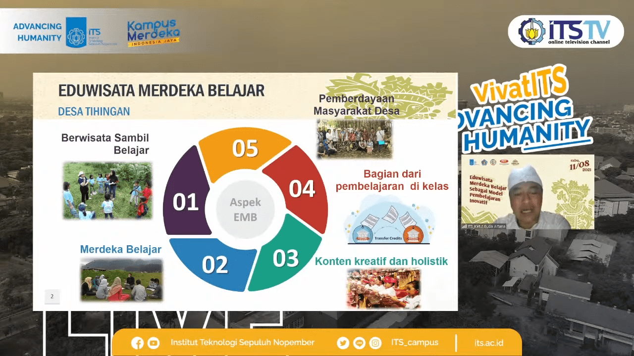 Kampus ITS, ITS News – Model pembelajaran inovatif menjadi salah satu perhatian penting dalam konsep Eduwisata Merdeka Belajar (EMB). Hal itu berhasil digagas oleh Institut Teknologi Sepuluh Nopember (ITS) sebagai solusi pengembangan wisata desa. Koordinator Tim Kuliah Kerja Nyata dan Pengabdian Masyarakat (KKN Abmas) ITS Desa Tihingan, Prof Dr Ketut Buda Artana ST MSc Ketut menjelaskan jika EMB dapat digambarkan sebagai kegiatan berwisata sambil belajar.