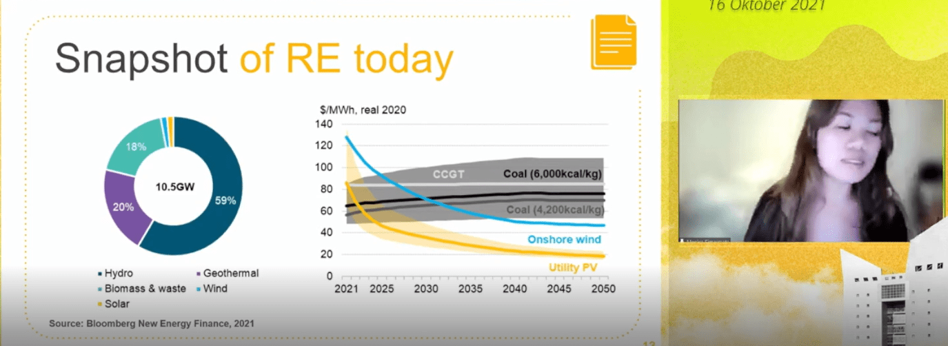 Menurut Monica, energi solar memiliki peluang lebih tinggi untuk diimplementasikan di Indonesia karena harga nya yang semakin turun. Menurut data dari Bloomberg, hingga 2050 harga solar menjadi lebih murah dari batu bara. Dengan begitu implementasi Solar sebagai energi pengganti batu bara dapat direalisasikan. “Namun masalahnya apakah investor tertarik untuk terlibat dalam proyek penggunaan energi solar tersebut,” sahutnya.